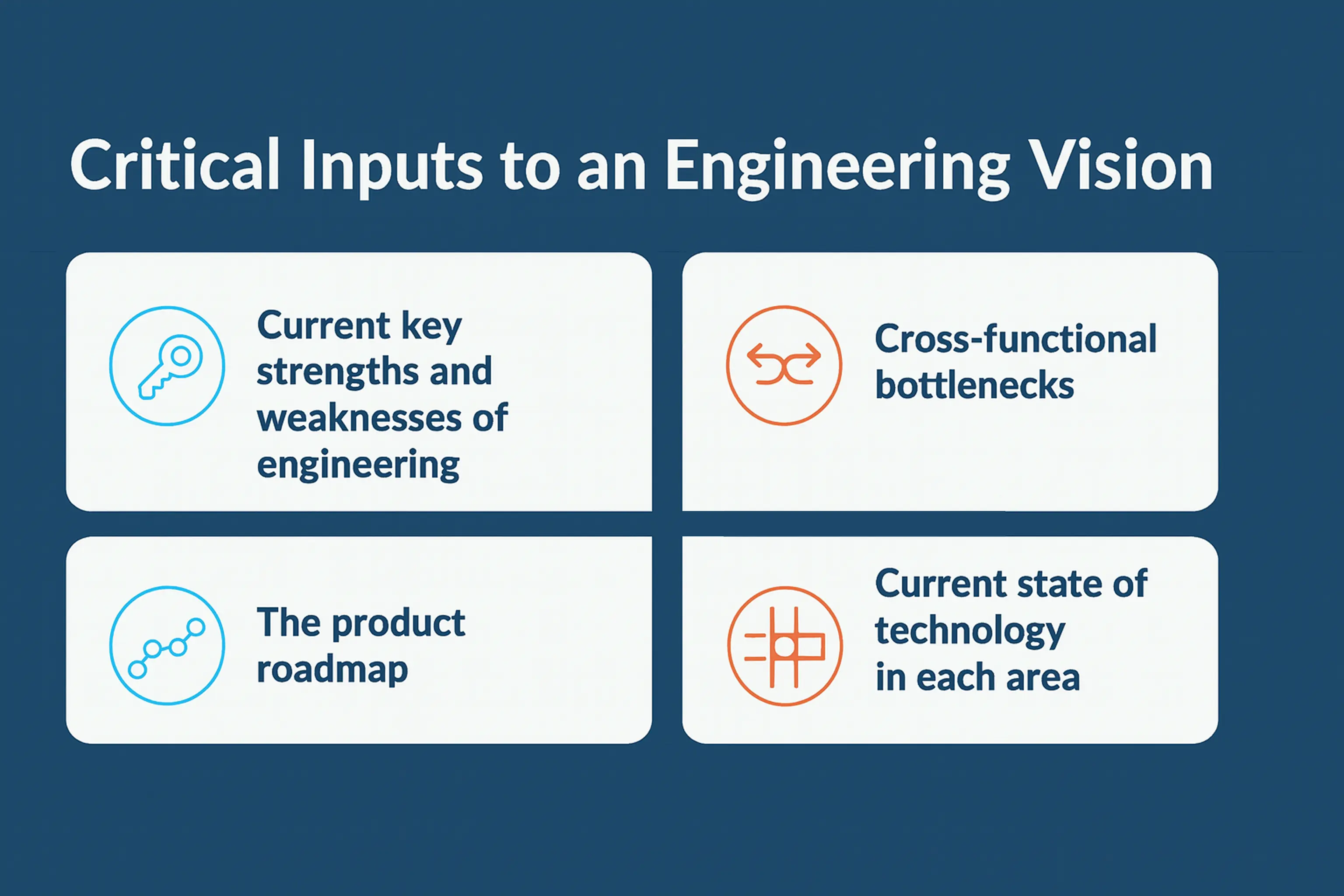 Your engineering vision must account for the product strategy over the same time horizon. This doesn't mean engineering simply implements product requirements—it means understanding the technical capabilities required to enable future product evolution and ensuring your vision develops those capabilities proactively rather than reactively.