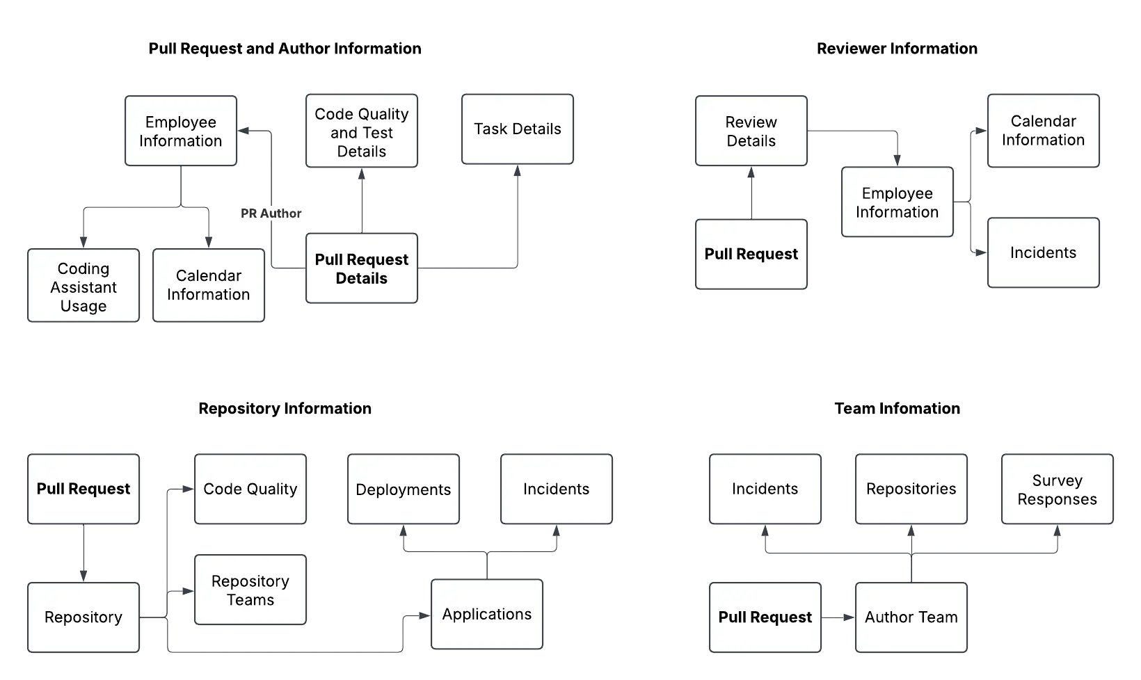 The features provide an ongoing comprehensive view of activities surrounding the creation and review of each PR, accounting for everything from authors and reviewers to repository and team information.
