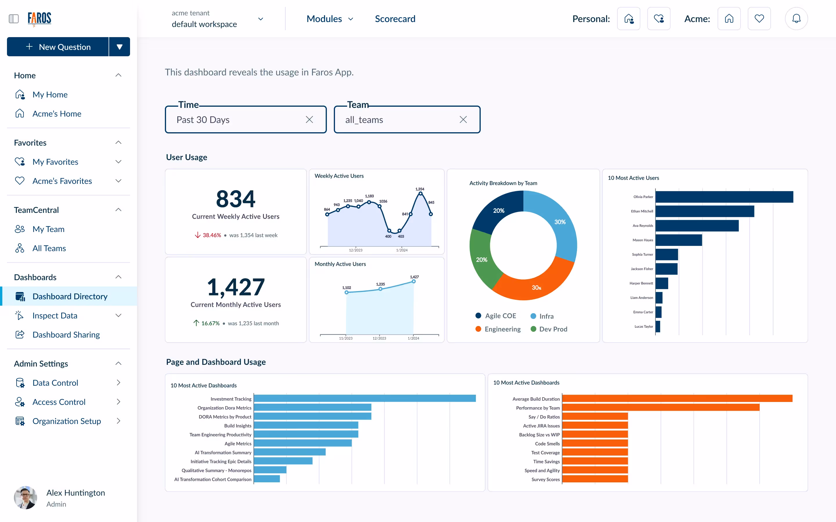 Which dashboards are most popular with your users? Which team or group consumes metrics the most frequently? How has adoption grown since you’ve rolled out Faros to a new tranche of teams?